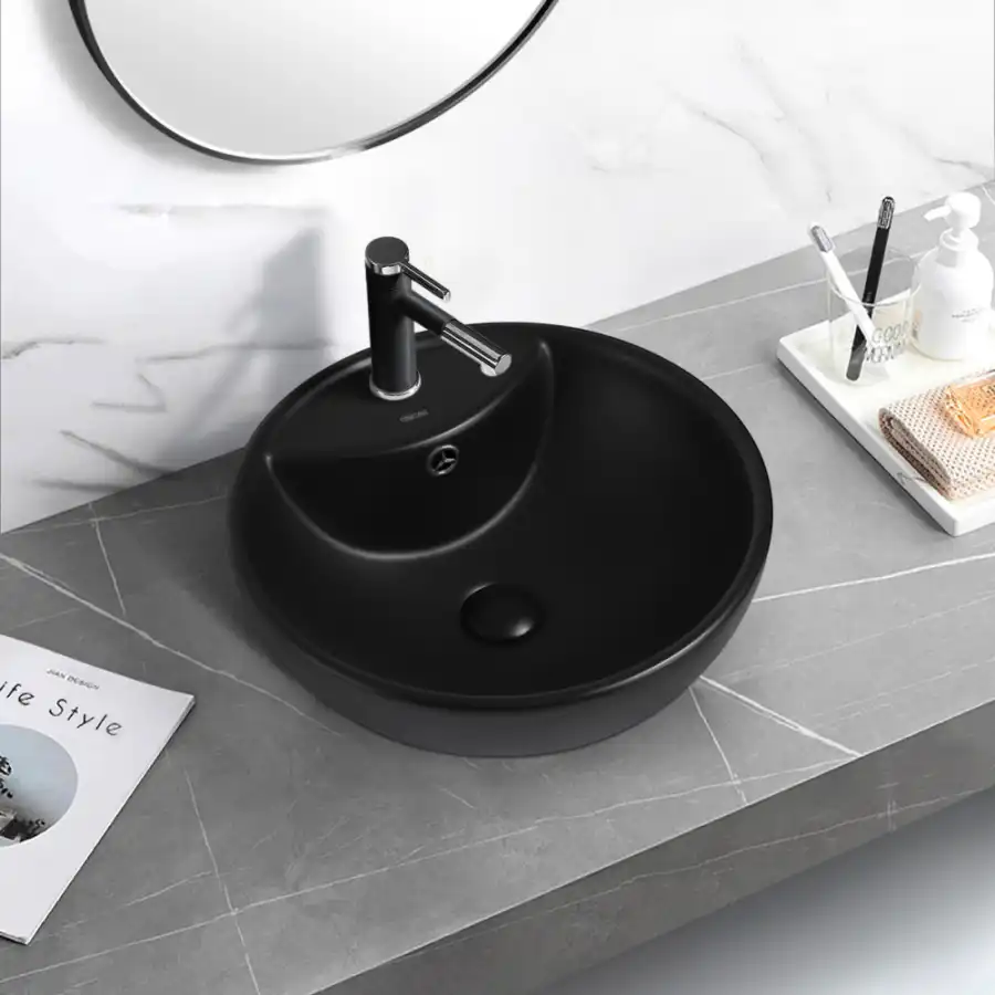 Раковина накладная круглая ABBER BEQUEM AC2101MB 46х46х17,5, черная матовая, материал - керамика