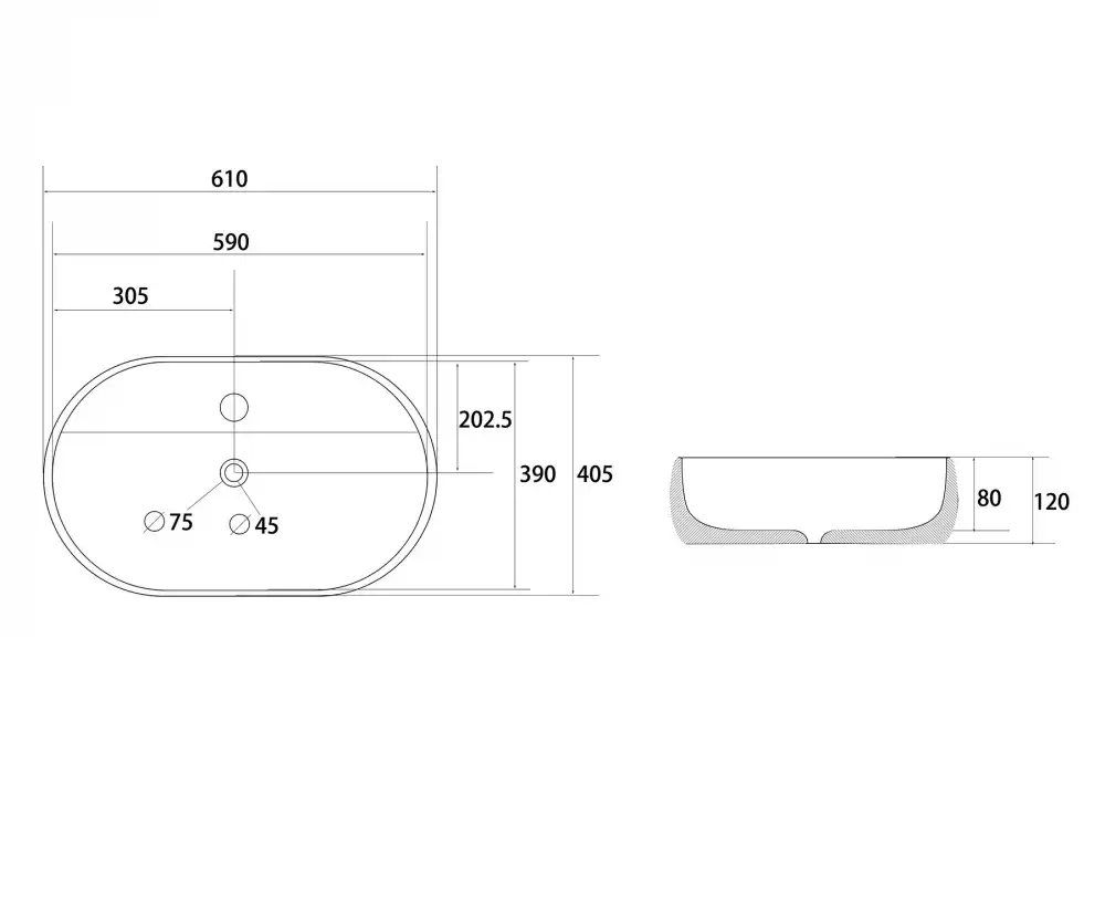 Раковина накладная ABBER BEQUEM 61х40,5х12 AC2113, овальная, белая