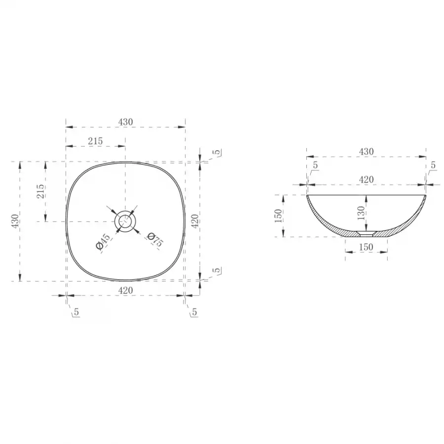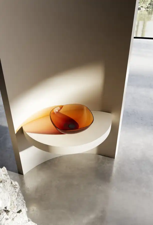 Раковина накладная прозрачная квадратная ABBER KRISTALL AT2806Opal 43х43х15, коричневая, материал - полиэфирная смола