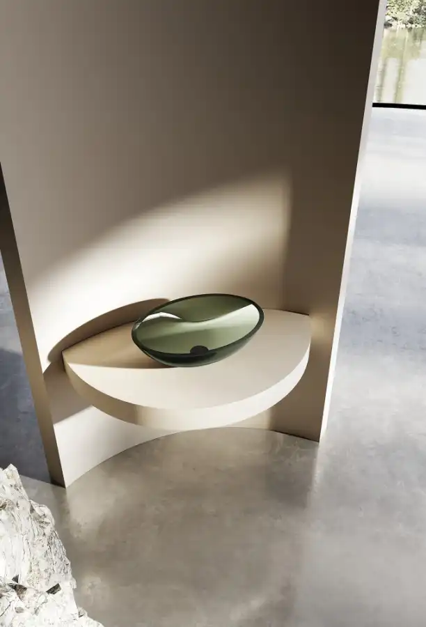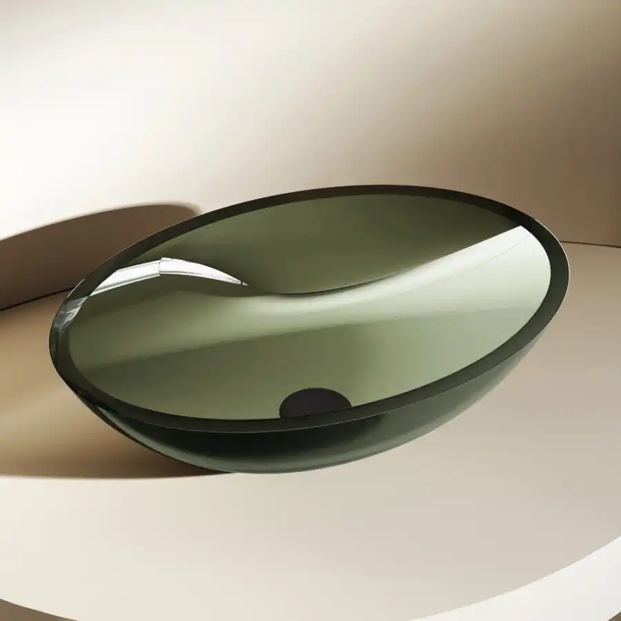 Раковина накладная прозрачная овальная ABBER KRISTALL AT2802Vesuvian 50х35х15, оливковая, материал - полиэфирная смола
