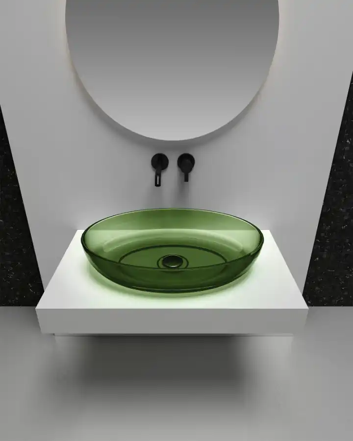 Раковина накладная прозрачная овальная ABBER KRISTALL AT2801Emerald 60х40х13, зеленая, материал - полиэфирная смола