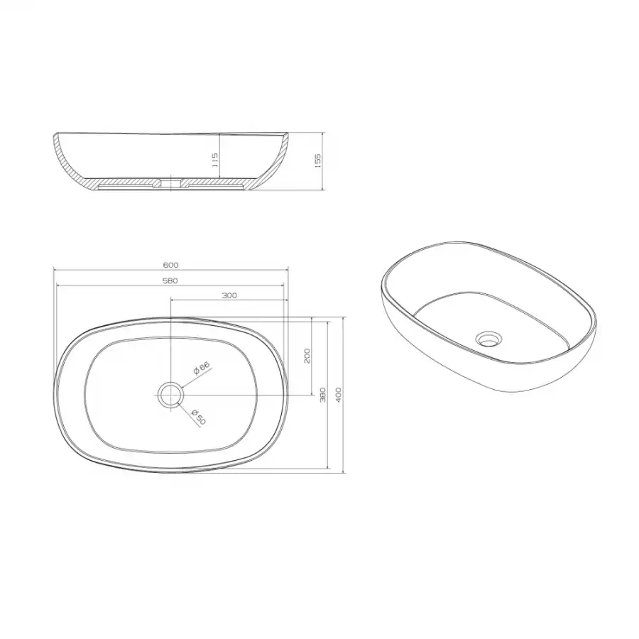 Раковина накладная ABBER KRISTALL 60х40х15,5 AT2805Opal, овальная, коричневая