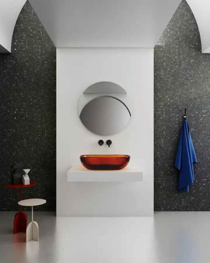 Раковина накладная прозрачная овальная ABBER KRISTALL AT2805Opal 60х40х15,5, коричневая, материал - полиэфирная смола