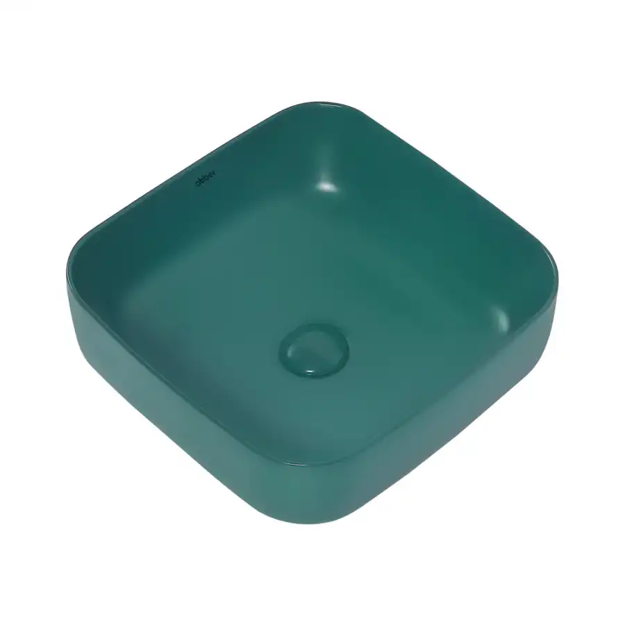 Раковина накладная квадратная ABBER RECHTECK AC2211MBG 38,5х38,5х13,5, темно-зеленая матовая, материал - фаянс