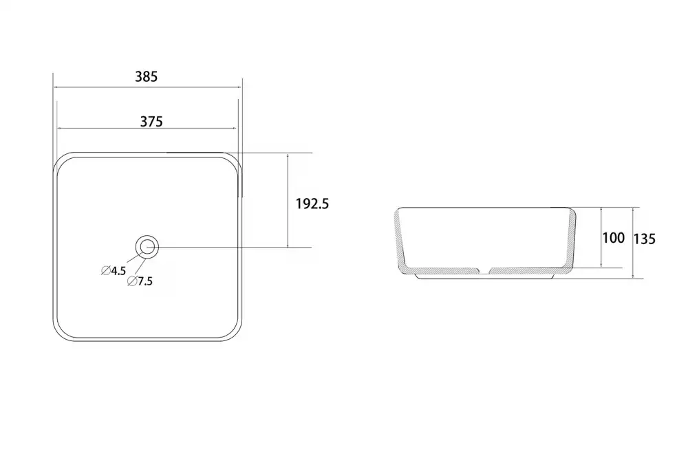 Форма раковиныКвадратная