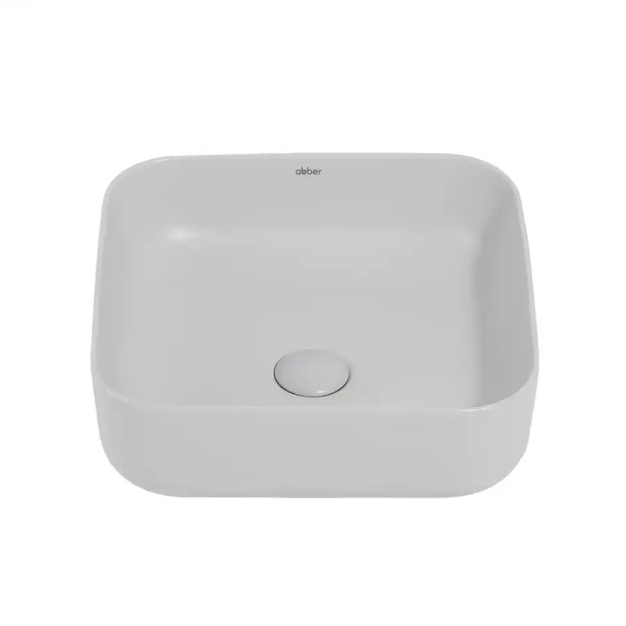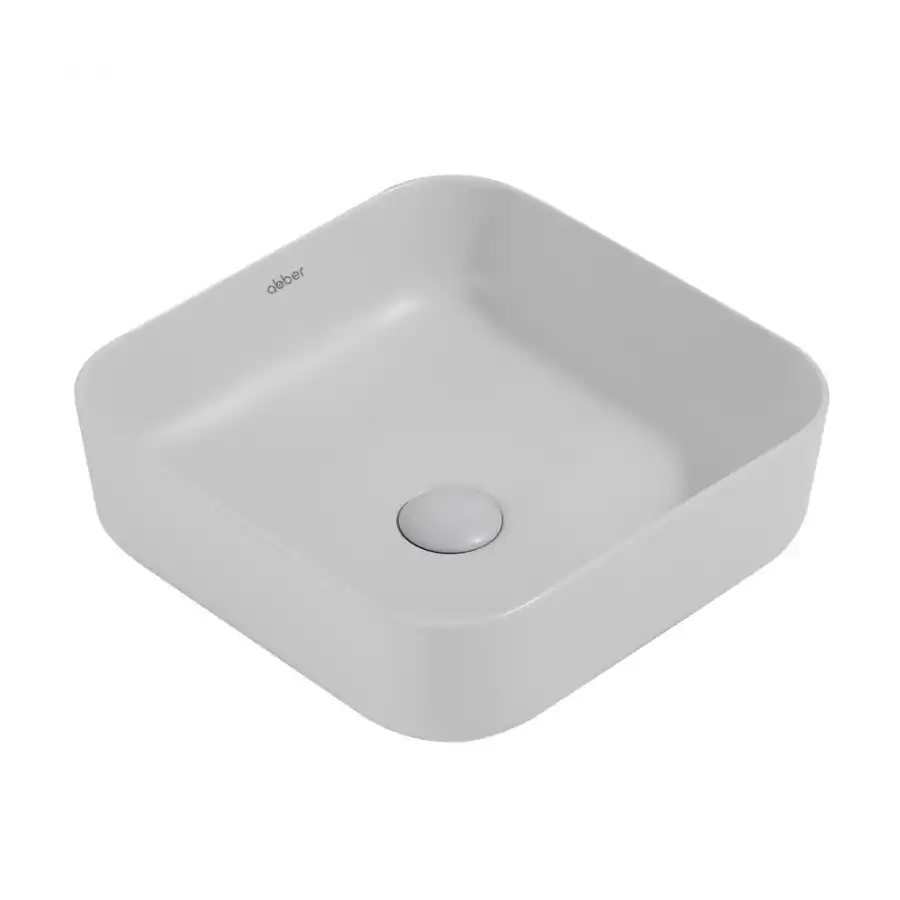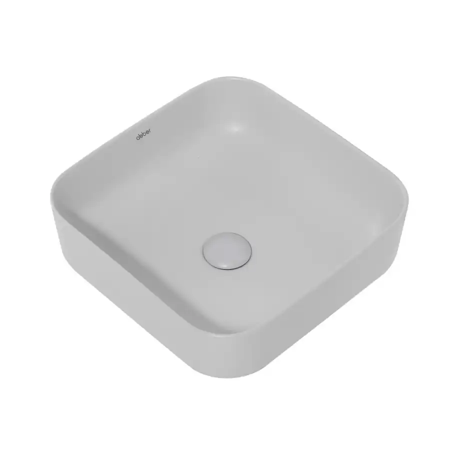 Раковина накладная квадратная ABBER RECHTECK AC2211MLG 38,5х38,5х13,5, светло-серая матовая, материал - фаянс