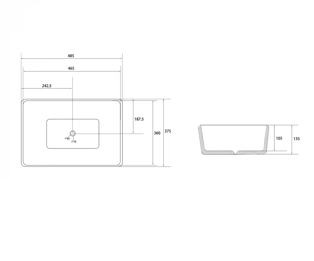 Раковина накладная ABBER RECHTECK 48,5х37,5х13,5 AC2212, прямоугольная, белая