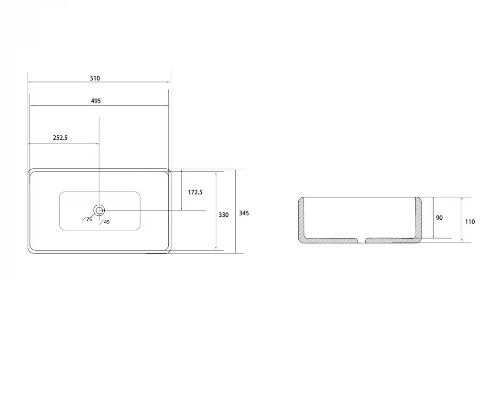 Раковина накладная ABBER RECHTECK 51х34,5х11 AC2207, прямоугольная, белая