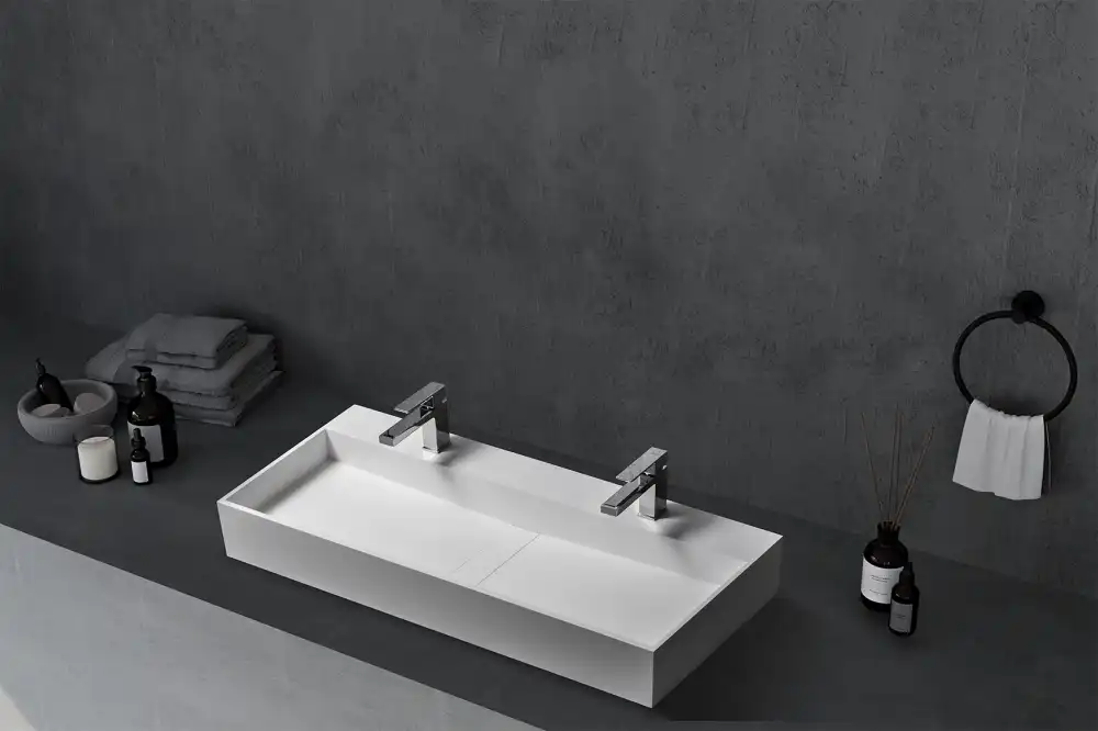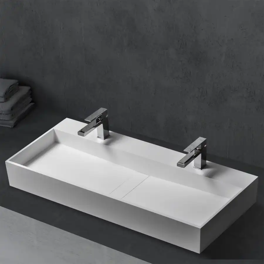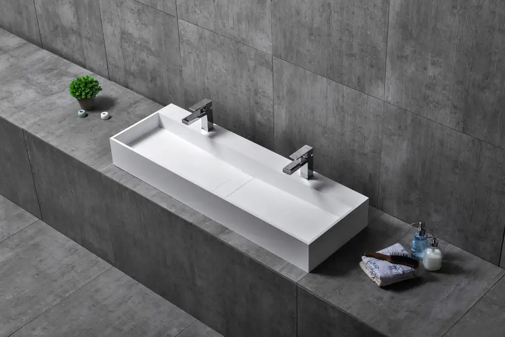 Раковина накладная прямоугольная ABBER STEIN AS2642 120х40х15, белая матовая, материал - искусственный камень