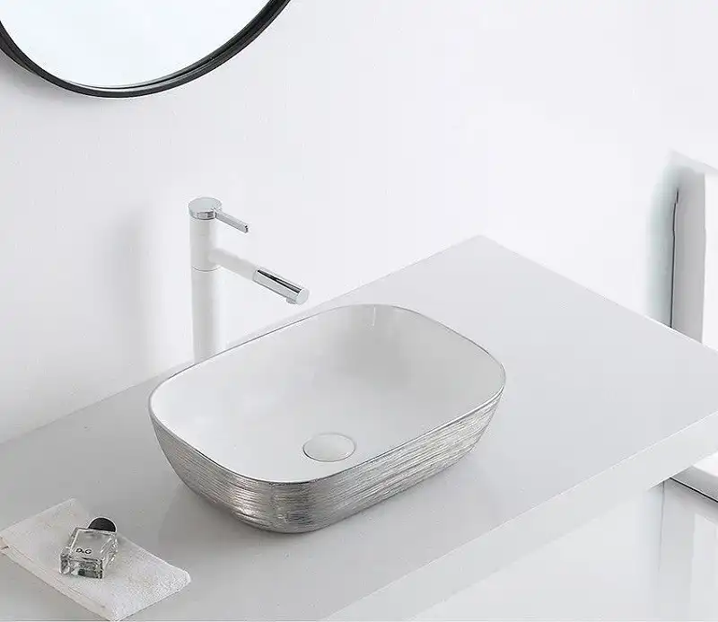 Раковина накладная CeramaLux 460х330х130 D1333H131, цвет Белый / Серый