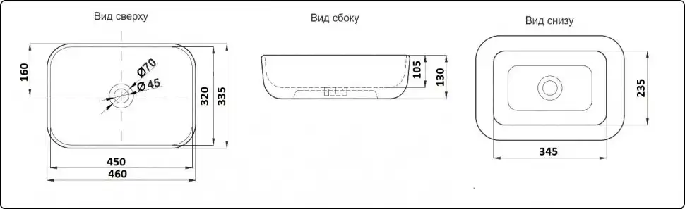 Раковина накладная CeramaLux 460х335х130 78105, цвет Белый