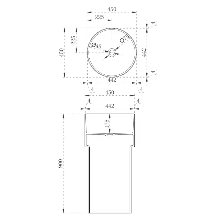 Раковина напольная ABBER KRISTALL 45х45х90 AT2701Rubin, круглая, красная