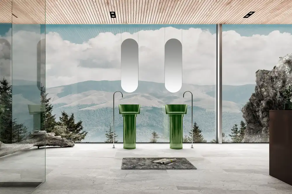 Раковина напольная ABBER KRISTALL 45х45х90 AT2702Emerald, круглая, зеленая