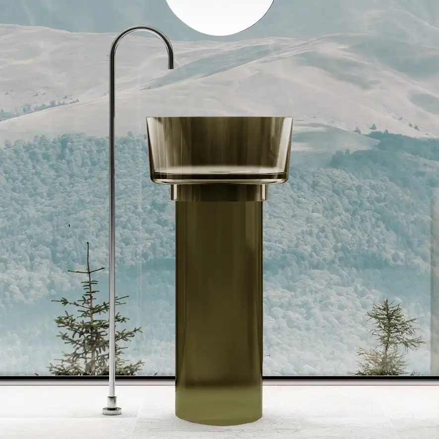 Раковина напольная ABBER KRISTALL 45х45х90 AT2702Vesuvian-H, круглая, оливковая