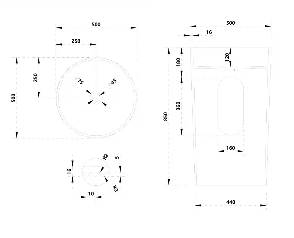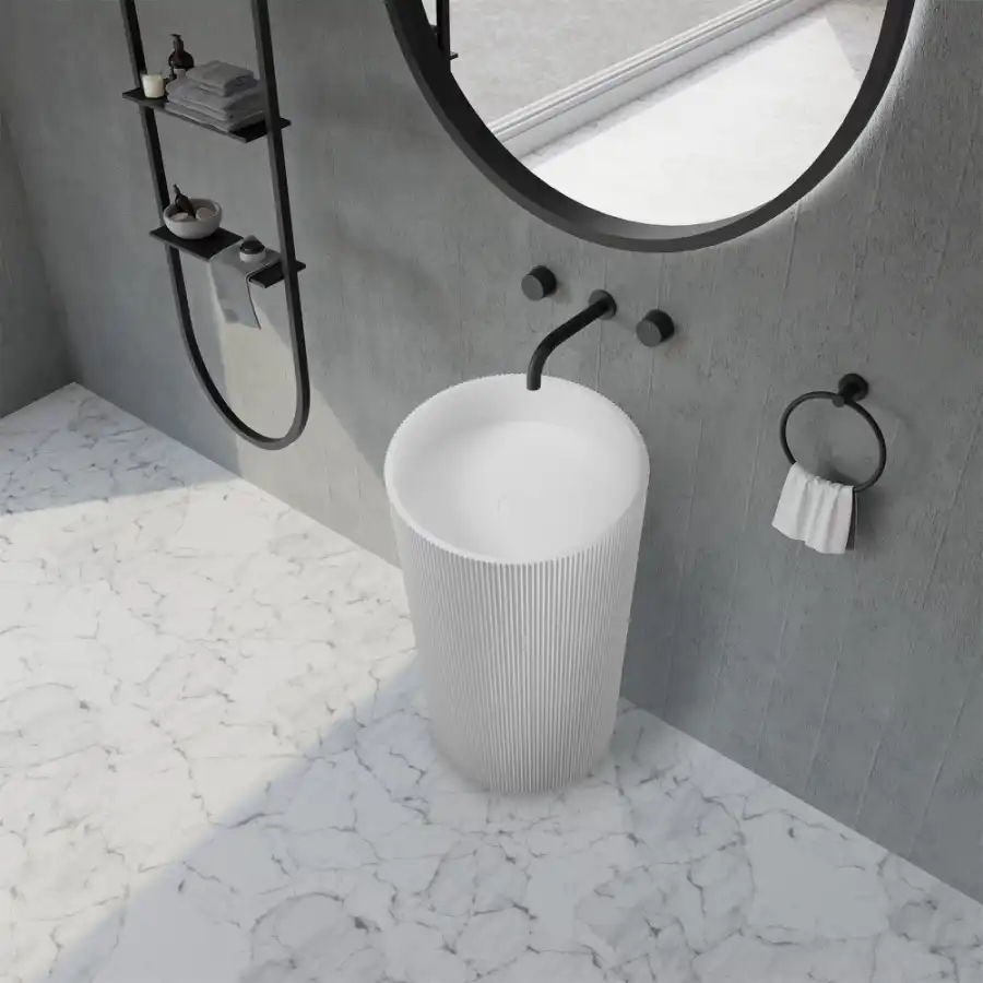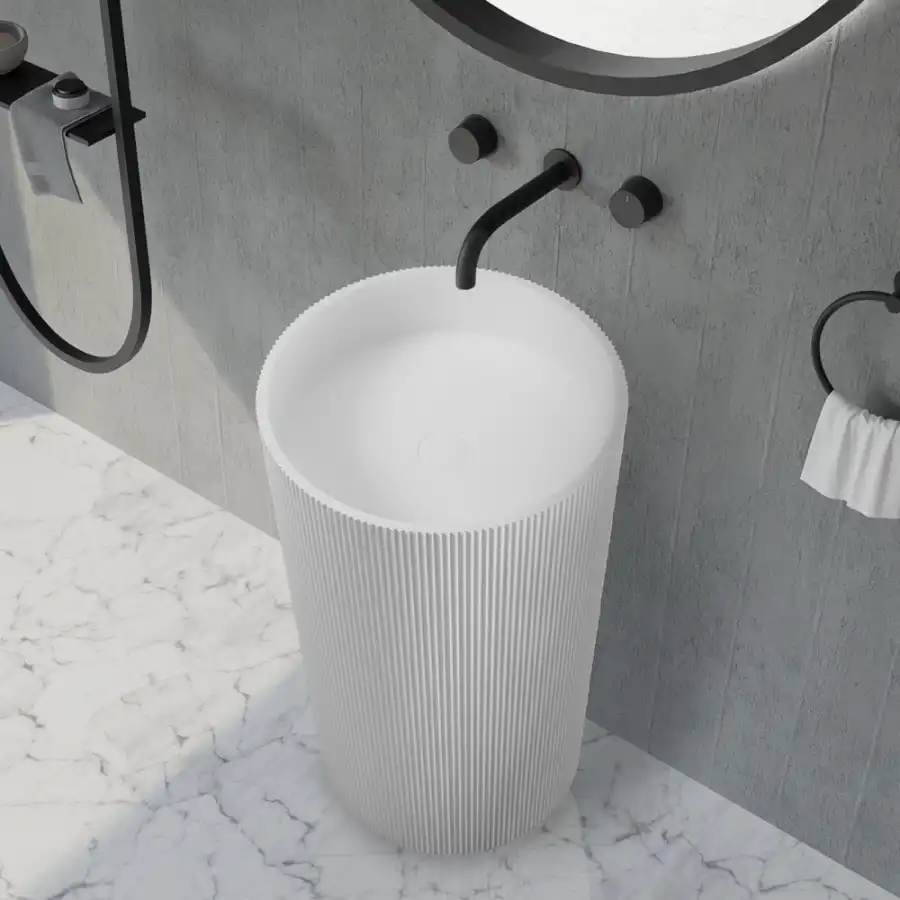 Раковина напольная круглая ABBER STEIN AS2501-H 50х50х85, белая матовая, материал - искусственный камень
