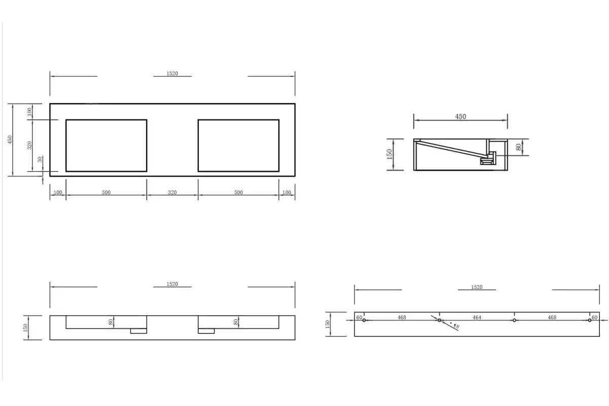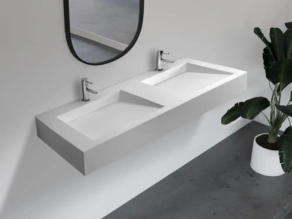 Раковина подвесная прямоугольная ABBER STEIN AS2643-1.5 152х45х15, белая матовая, материал - искусственный камень