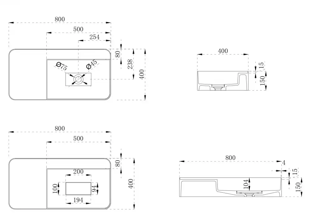 Раковина подвесная прямоугольная ABBER STEIN AS2627-0.8 80х40х15, белая матовая, материал - искусственный камень