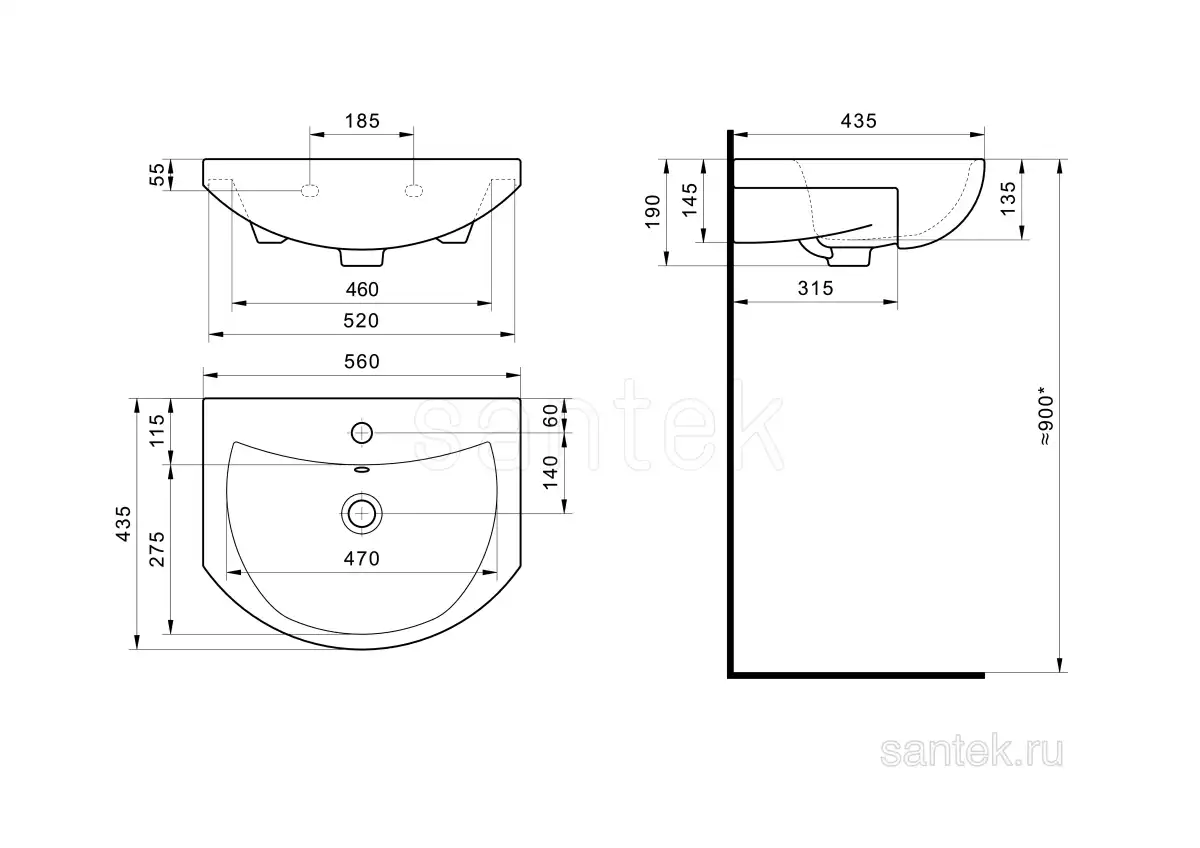 Раковина Santek Балтика 55 отверстие под смеситель 1WH501702