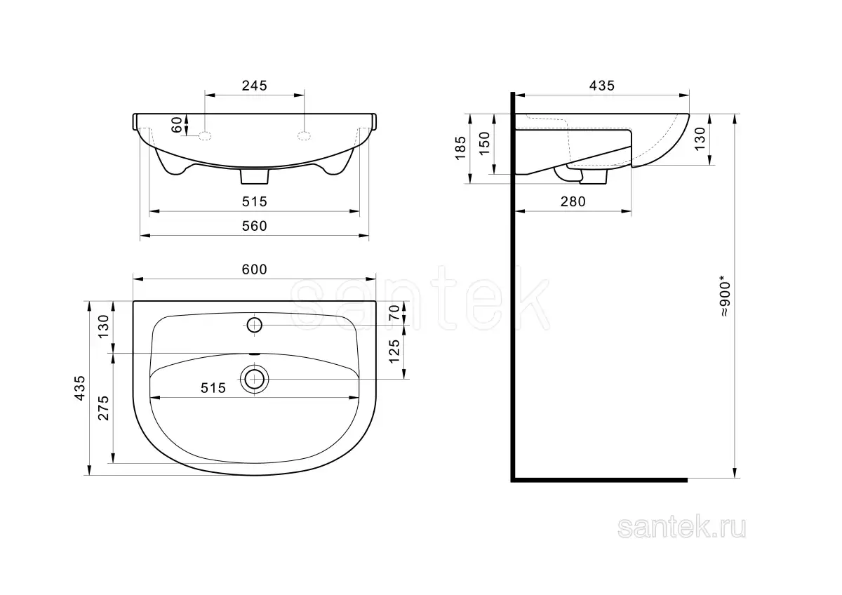 Раковина Santek Эллада 60 отверстие под смеситель 1WH110198