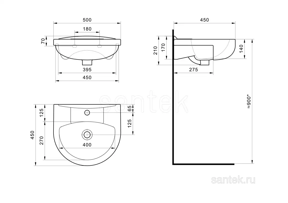 Раковина Santek Канны 50 отверстие под смеситель 1WH110243