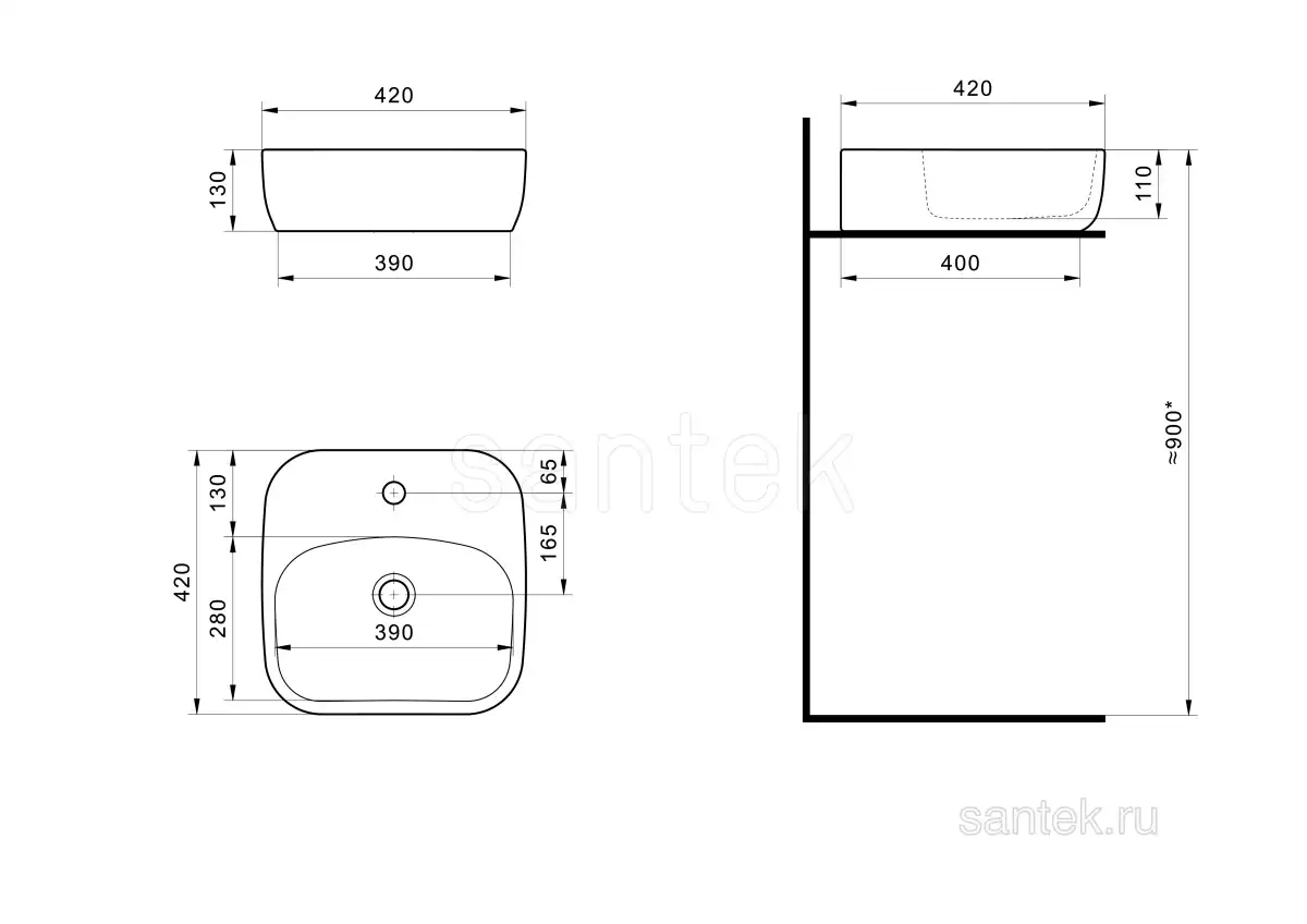 Раковина Santek Одри Soft 420х420 отверстие под смеситель 1WH501709