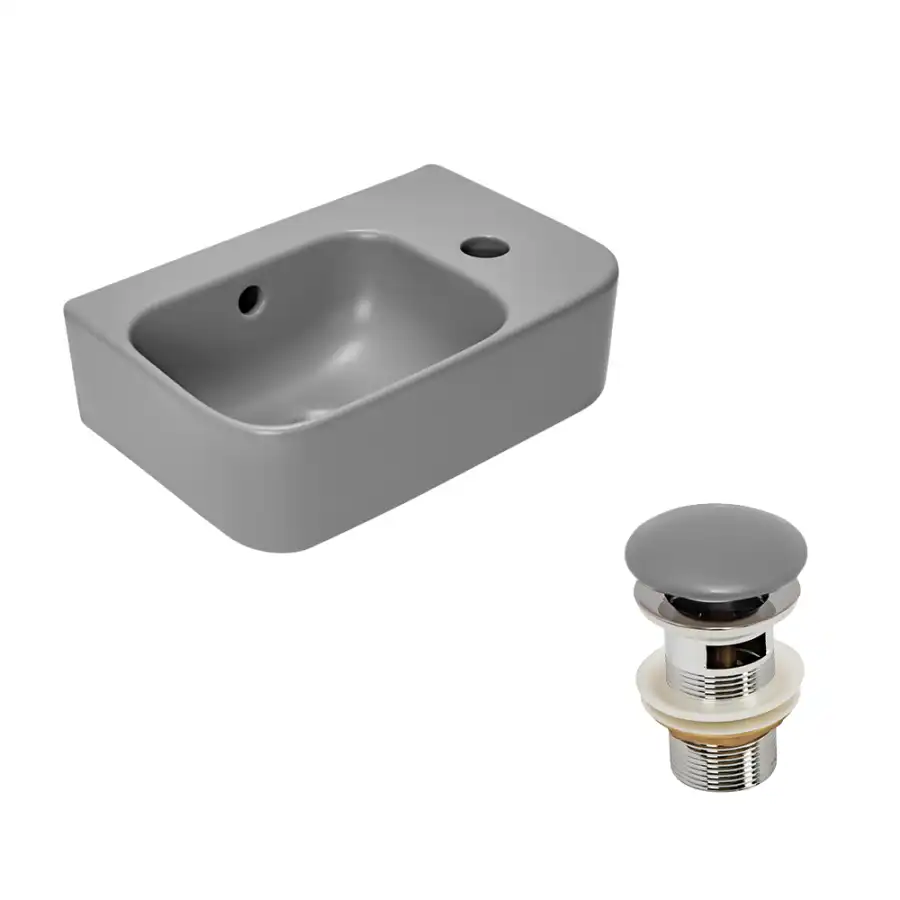 Рукомойник AVS Грэйс 37x25 L, цементно-серый матовый с донным клапаном
