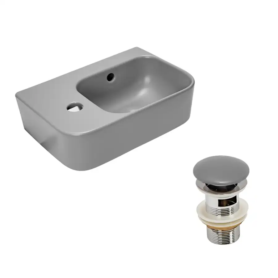 Рукомойник AVS Грэйс 37x25 R, цементно-серый матовый с донным клапаном