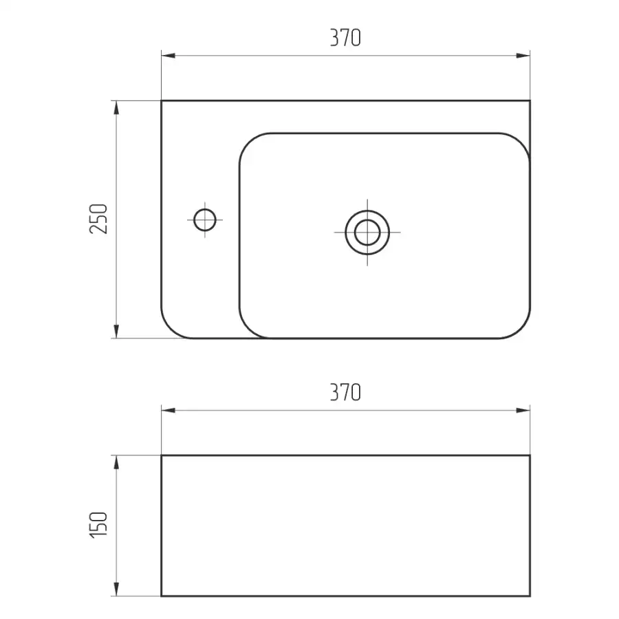 Рукомойник AVS Грэйс 37x25 R, темно-серый матовый с донным клапаном, N813-0226-37R-MDH/0100-MDH.