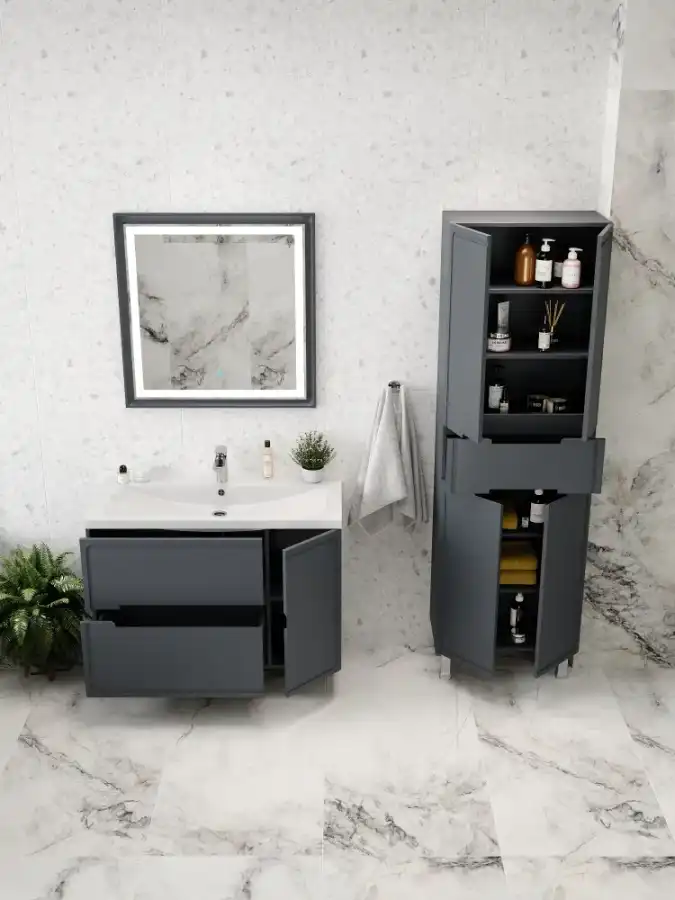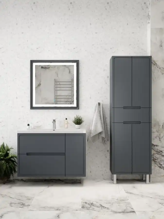 Шкаф-пенал для ванной FAURAplus Izabel 60, напольный, универсальный, Графит матовый