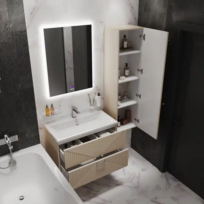 Шкаф-пенал для ванной Grossman Луксор 35 подвесной, бежевый матовый (303551)