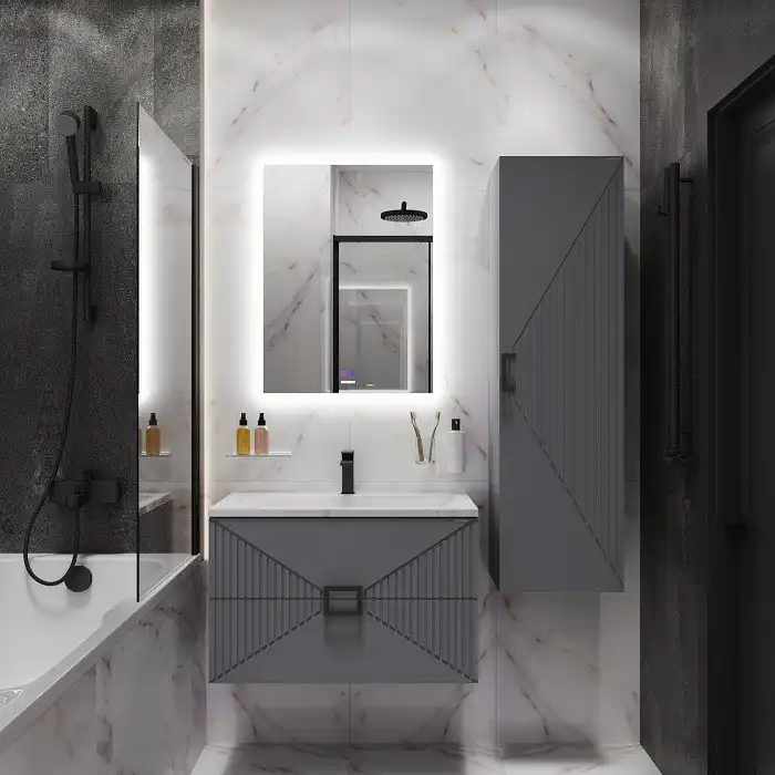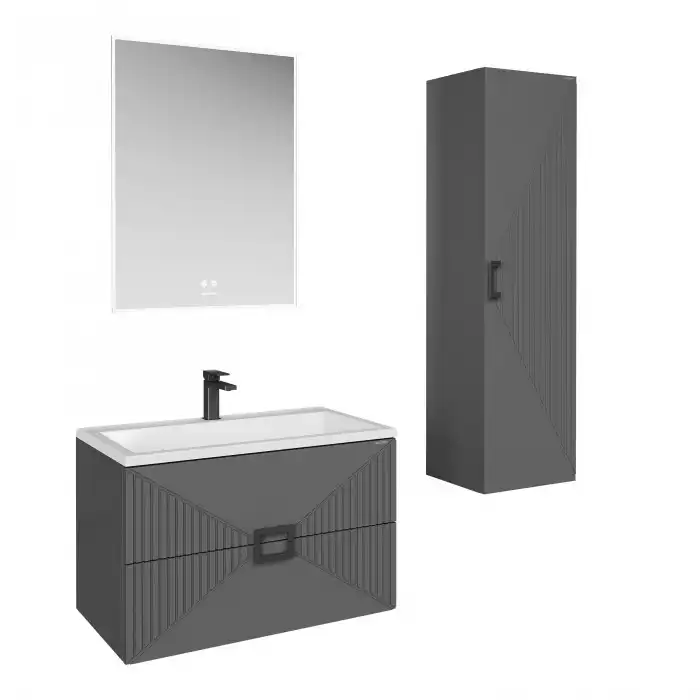 Шкаф-пенал для ванной Grossman Луксор 35 подвесной, графит матовый (303549)