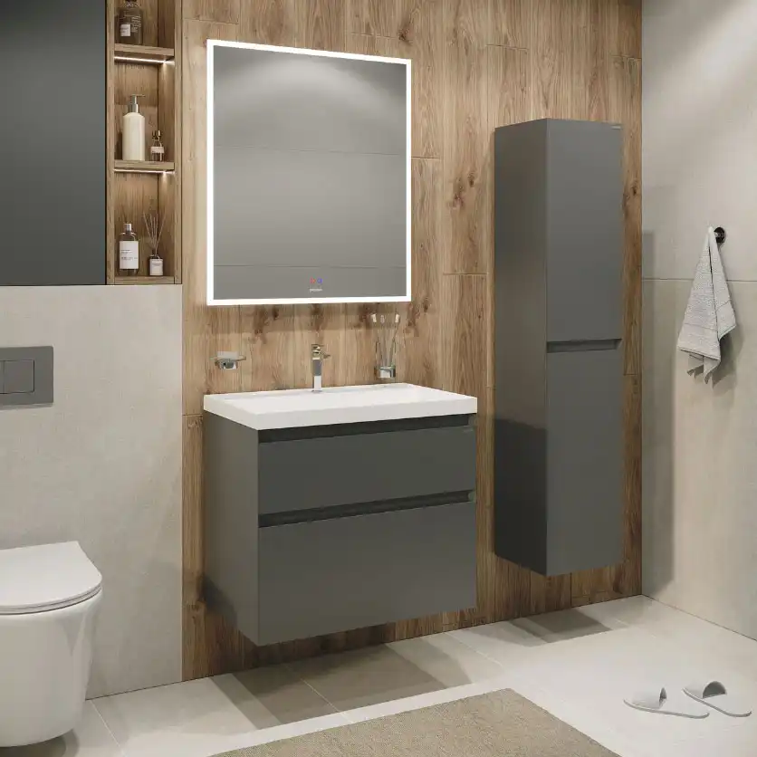 Шкаф-пенал для ванной Grossman Меркадо 32 подвесной, графит матовый (303285)