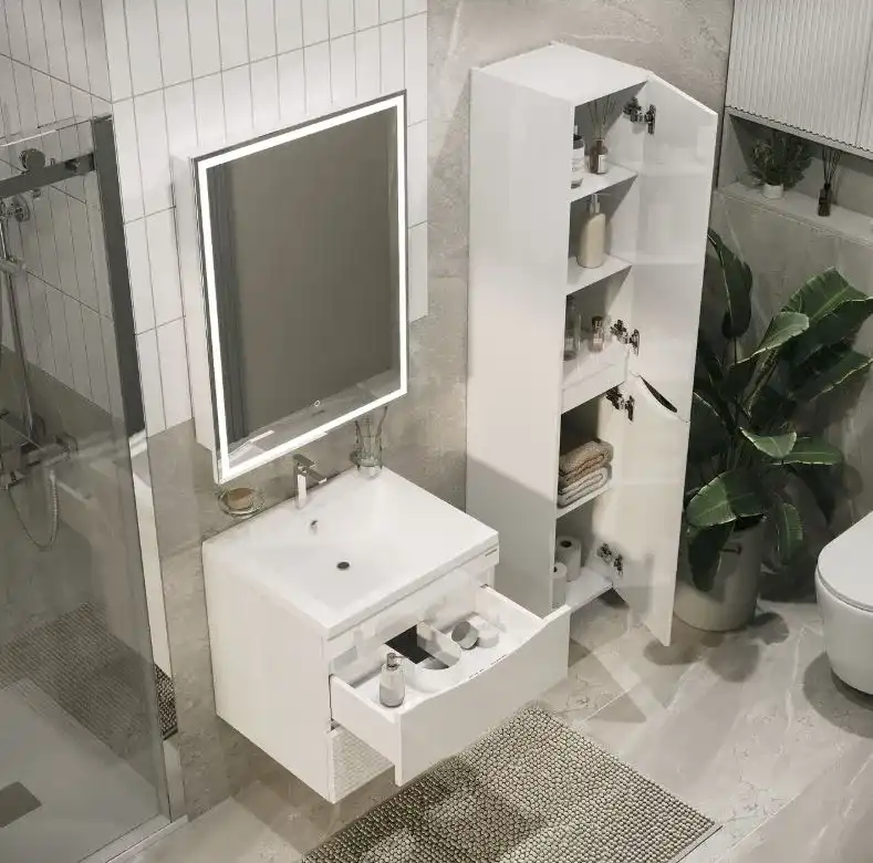 Шкаф-пенал для ванной Grossman Виста 30 подвесной, белый глянцевый (303069)