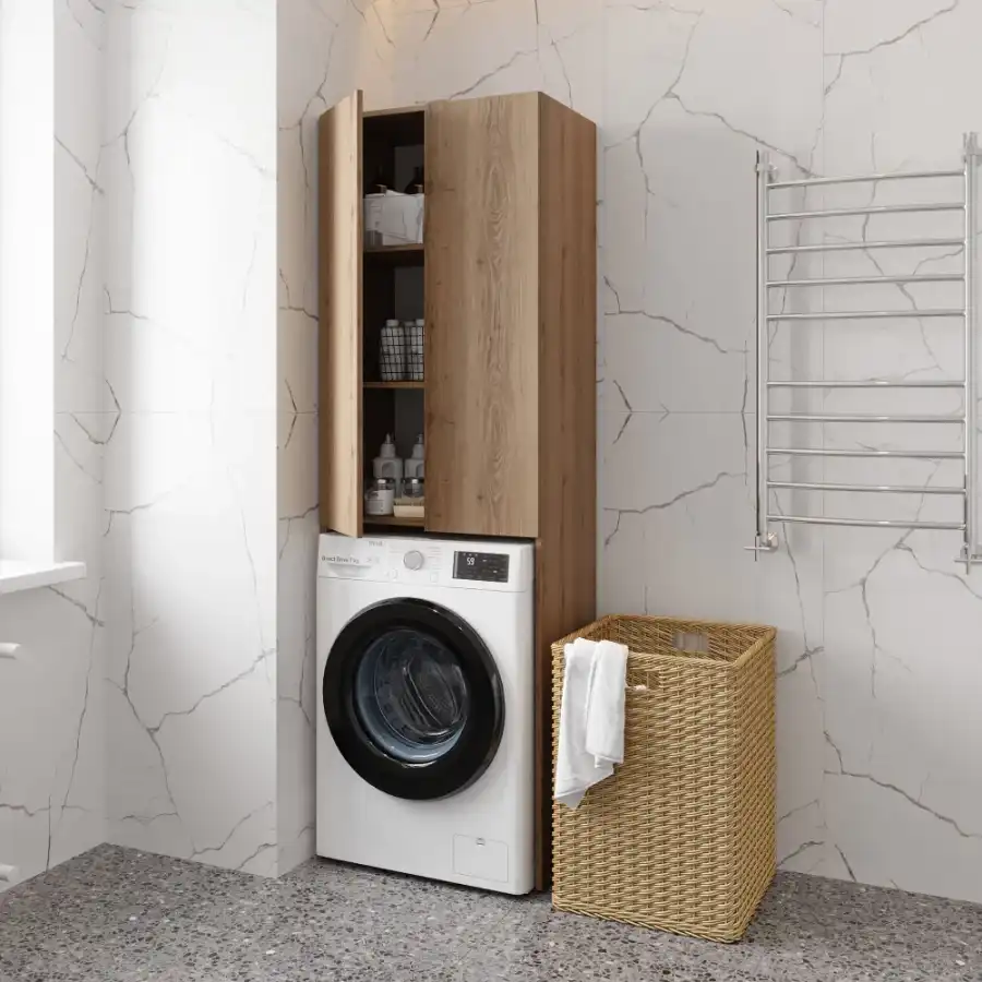 Шкаф пенал для ванной под стиральную машинку FAURAplus, Аура 652*400*2000, дуб эльвези.
