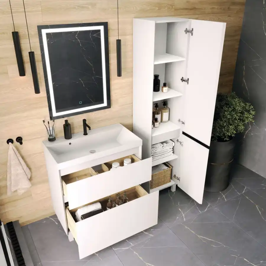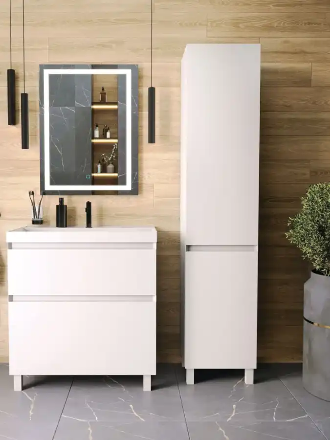 Шкаф-пенал для ванной комнаты FAURAplus Лаура 40 напольный, белый матовый, шкаф полка