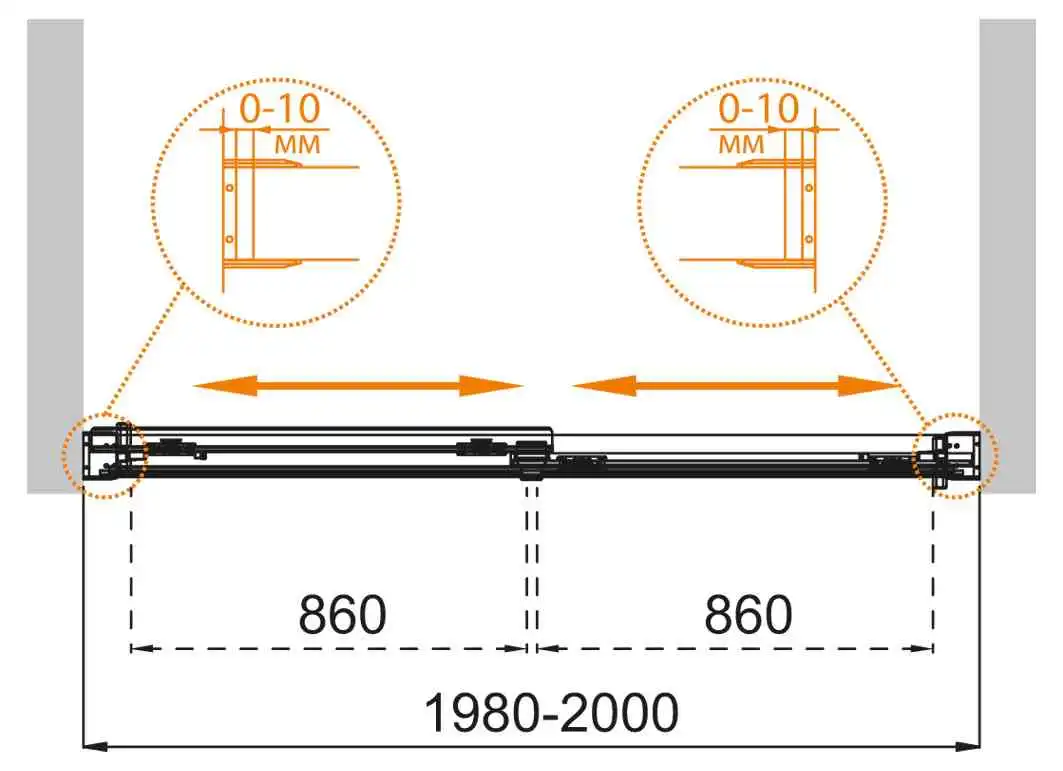 Регулировка ширины: предусмотрена за счет боковых профилей
