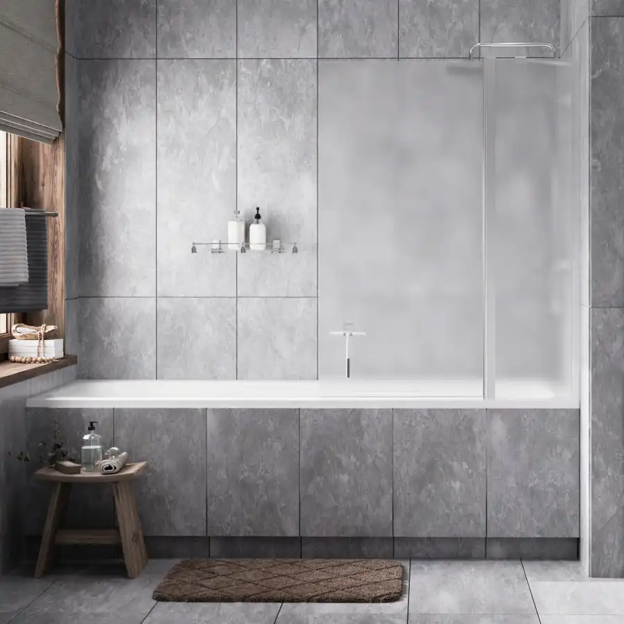 1) Закаленное матовое стекло 6 мм. В стеклянных шторках используется закаленное стекло стандарта EN 12150-1. Обладает термической прочностью и совершенно безопасно для человека.