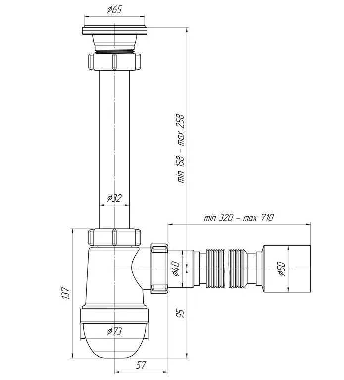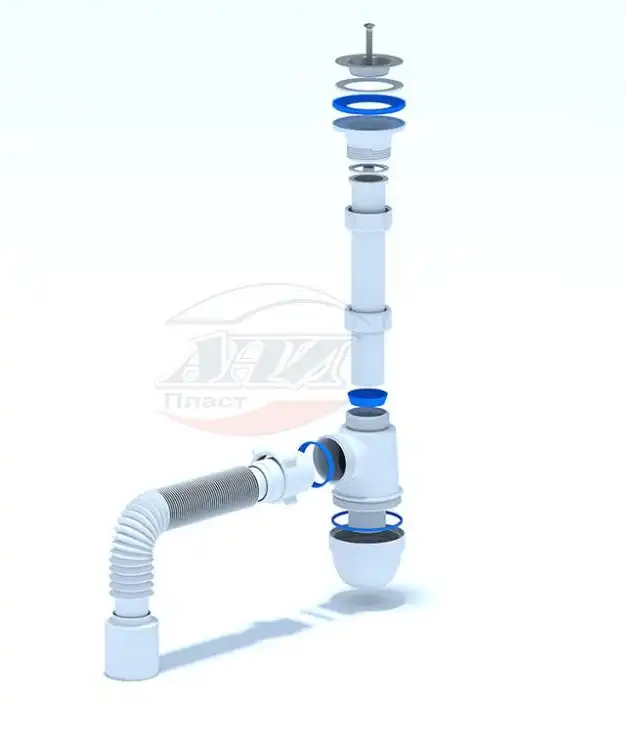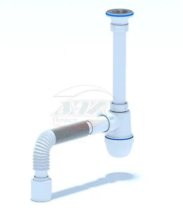 Сифон для умывальника Ани Пласт 1 1/4*40 С1010 с гибкой трубой 40*50 бутылочного типа с нержавеющей решеткой 65мм. Для подключения к канализации комплектуется гибкой трубой 40*50мм