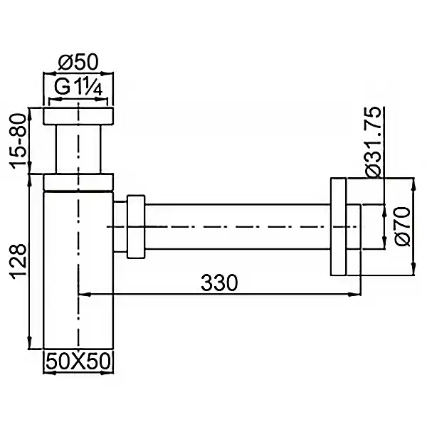 Сифон для раковины AZARIO AZ-109-CHR G 1 1/4, без выпуска, квадрат, латунь, хром