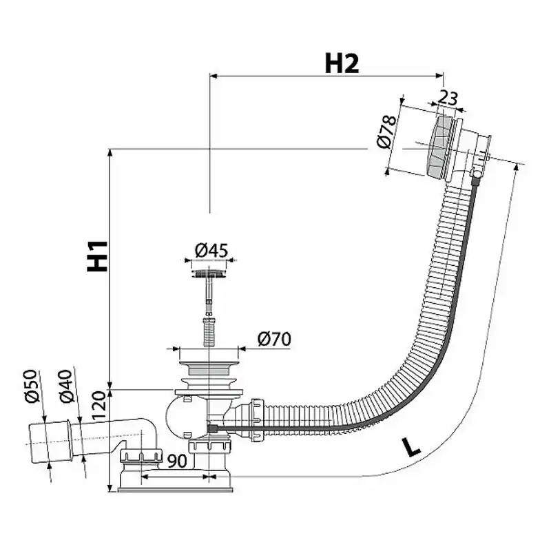 Alcaplast Сифон для ванны автомат комплект металл/металл длина 80 см A55K-80-RU-01