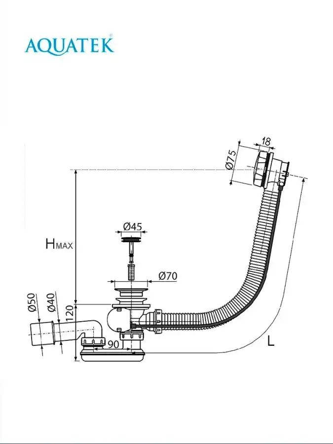 Слив-перелив для ванны Aquatek ST-0000010, полуавтомат, Хром
