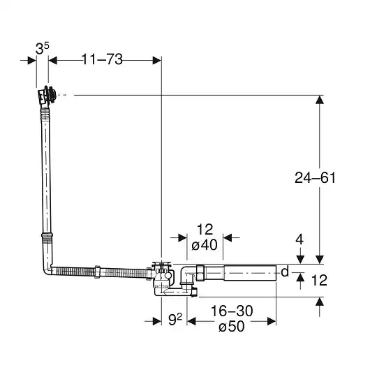 Слив-перелив для ванны Geberit 150.525.21.6 удлиненный, Хром