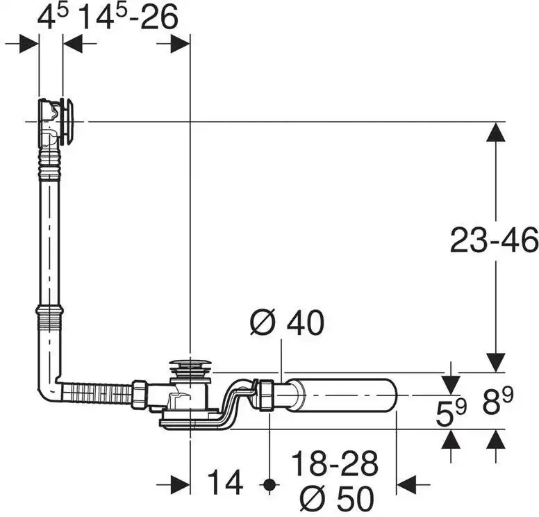 Слив-перелив для ванны Geberit Uniflex New 150.755.21.6 с кнопкой слива (нажатия) PushControl