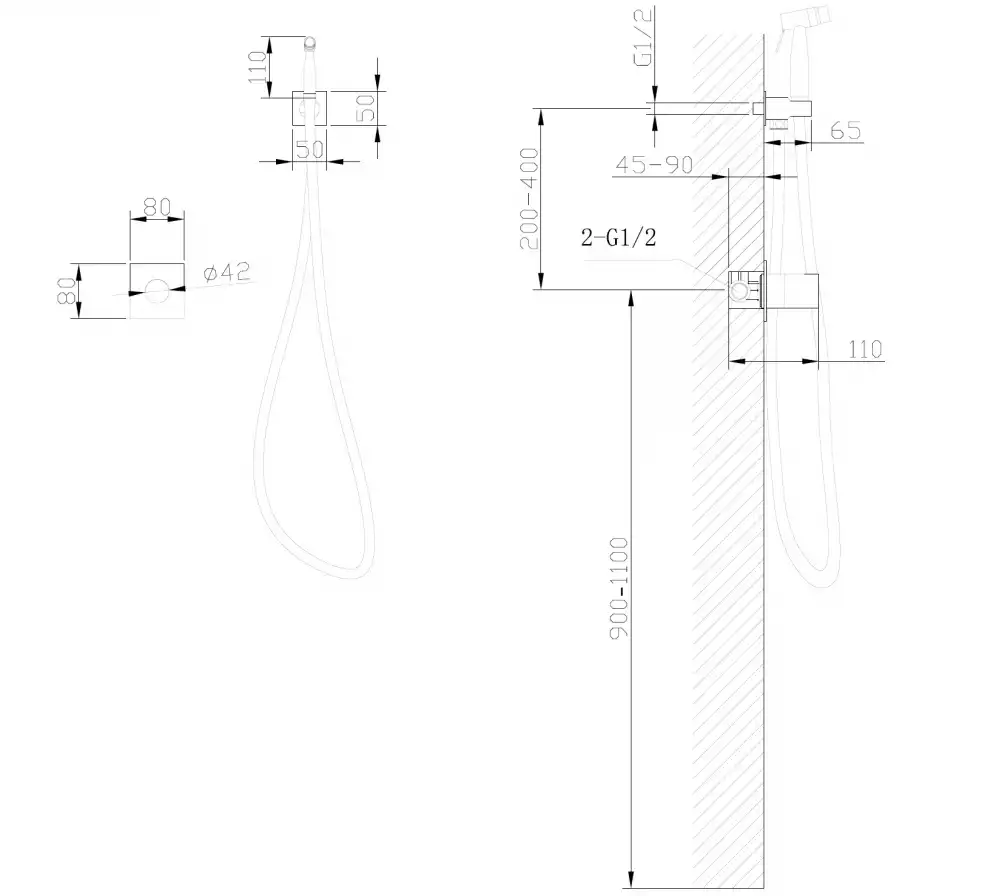 Гигиенический душ со смесителем Abber Rund AF8725B с прогрессивным картриджем, Черный