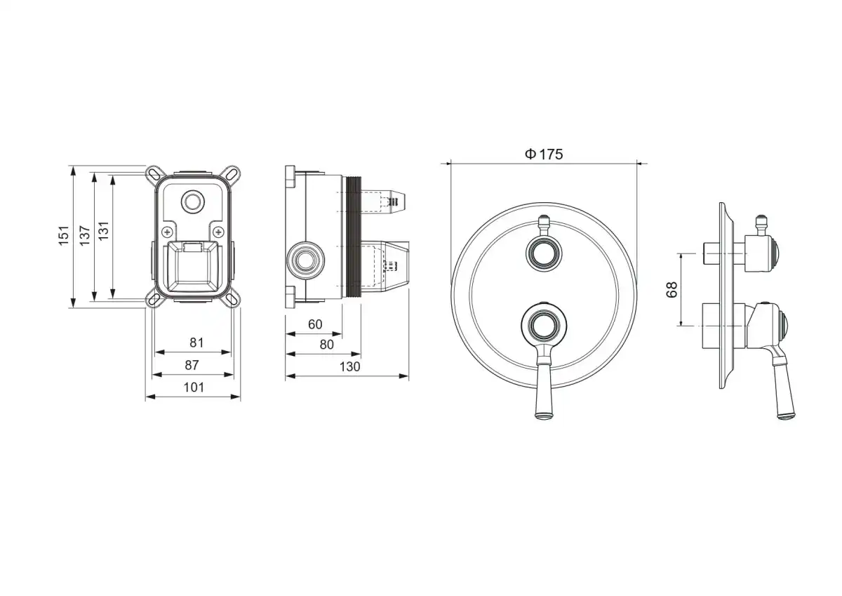 - Смеситель из латуни с установочной коробкой на 2 потребителя
