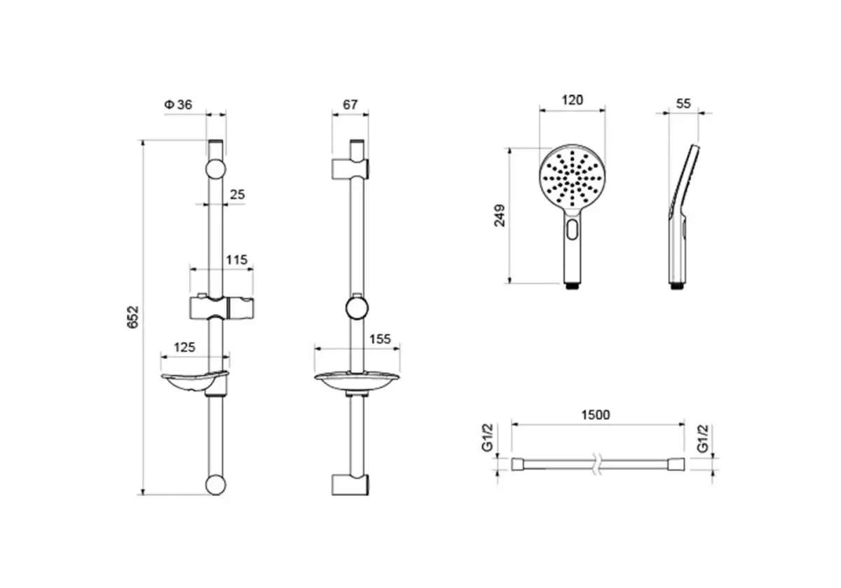 AQ1260CR ОБЕРОН смеситель для душа + AQ2014CR ОБЕРОН душевой гарнитур 3jet 60 см