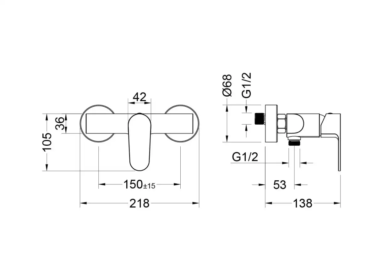 Смеситель для душа Aquatek Оберон AQ1232CR, с душевым гарнитуром однорычажный, Хром