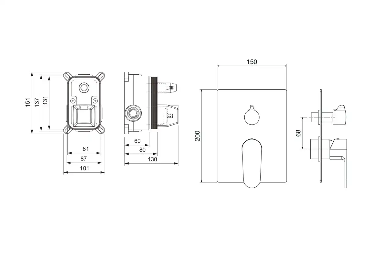 - Смеситель из латуни с установочной коробкой на 2 потребителя