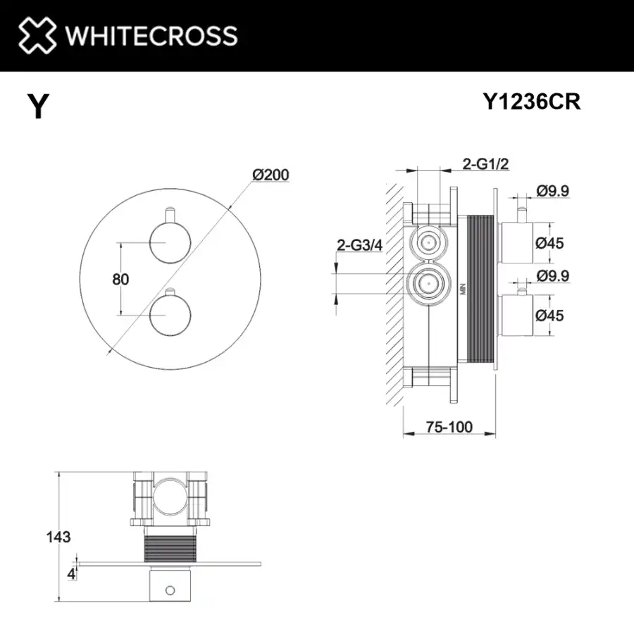 Смеситель для душа Whitecross Y chrome скрытого монтажа термостатический Хром, Y1236CR
