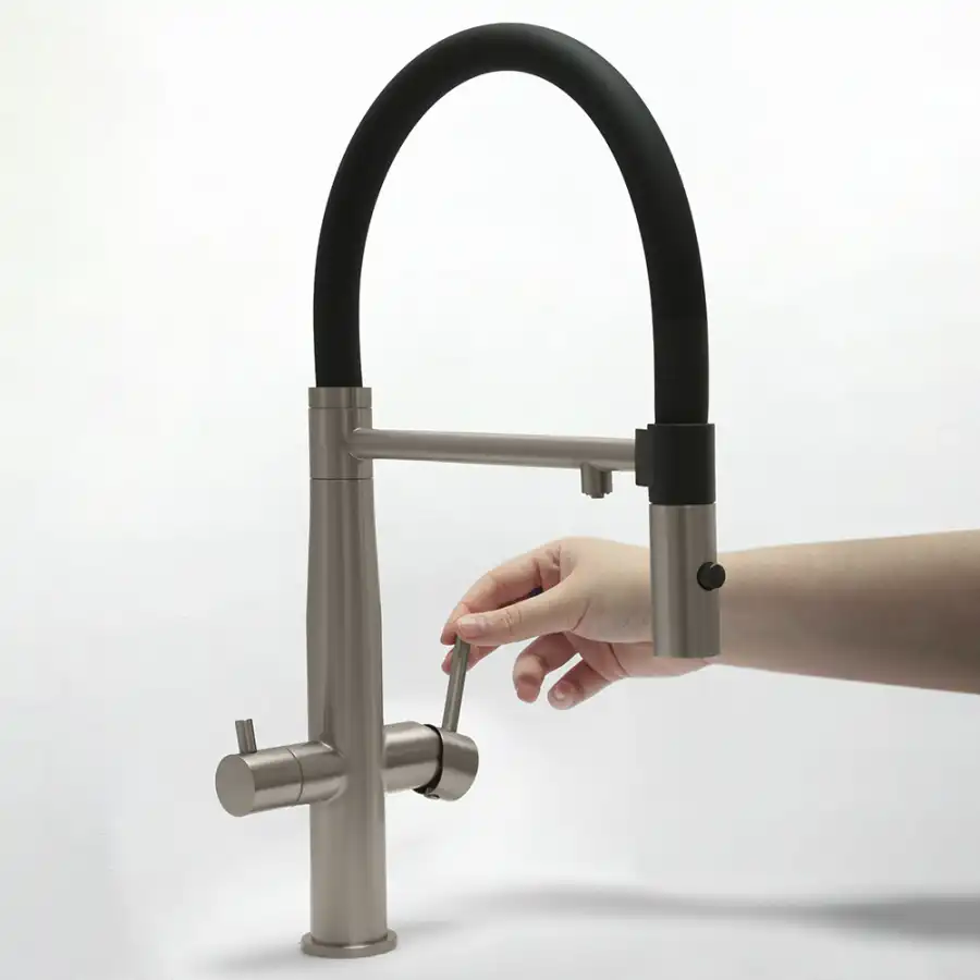 Смеситель для кухни с гибким изливом AVS PureRiver брашированный никель, 811-170-BN